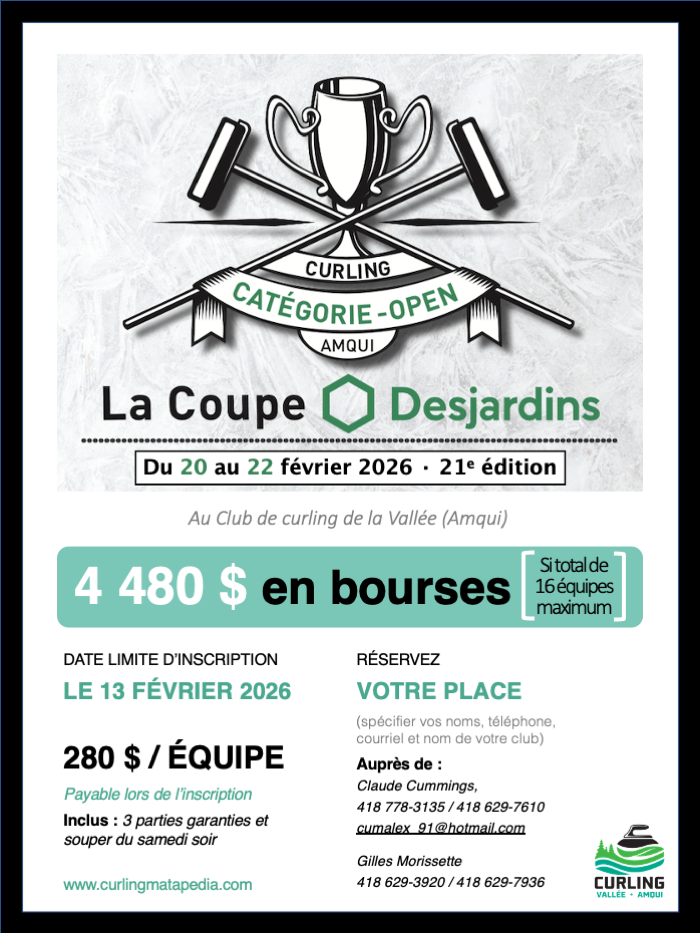 Si vous êtes intéressé·e·s à y participer, inscrivez votre équipe auprès de Claude Cummings ou Gilles Morissette (voir courriels ou téléphones dans l'affiche ci-bas) avant le 13 février.